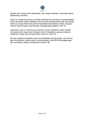untuk menangani pasien terinfeksi Covid-19 seperti petugas kebersihan dan pekerja