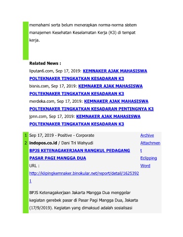 liputan6.com, Sep 17, 2019: KEMNAKER AJAK MAHASISWA