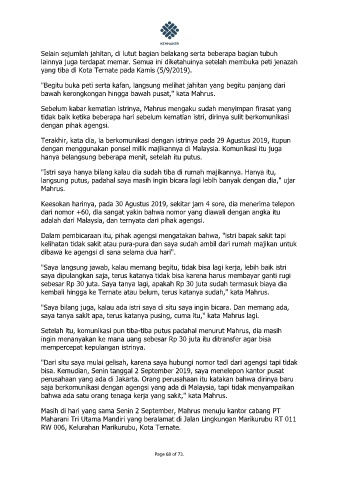 tidak baik ketika beberapa hari sebelum kematian istri, dirinya sulit berkomunikasi