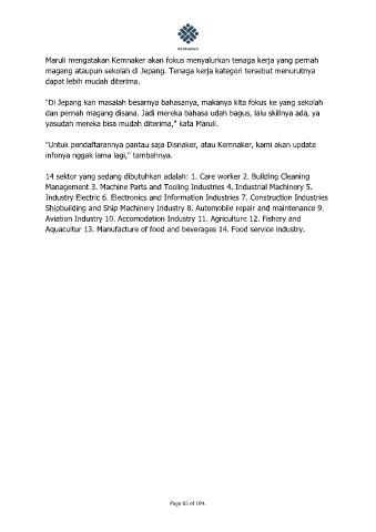 14 sektor yang sedang dibutuhkan adalah: 1. Care worker 2. Building Cleaning