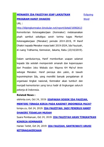 MENAKER IDA FAUZIYAH SIAP LANJUTKAN Eclipping