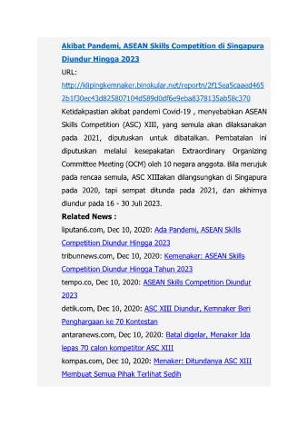 kompas.com, Dec 10, 2020: Menaker: Ditundanya ASC XIII