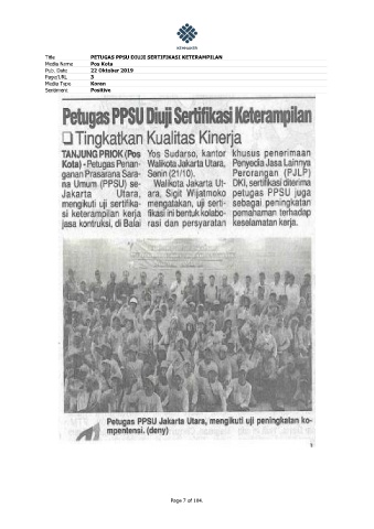 Title PETUGAS PPSU DIUJI SERTIFIKASI KETERAMPILAN Media Name Pos Kota Pub. Date 22 Oktober 2019 Page/URL 3 Media Type Koran Sentiment Positive Page 7 of 104.