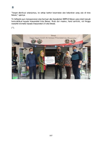 berkontribusi kepada masyarakat Kota Bekasi. Mulai dari masker, hand sanitizer, roti hingga