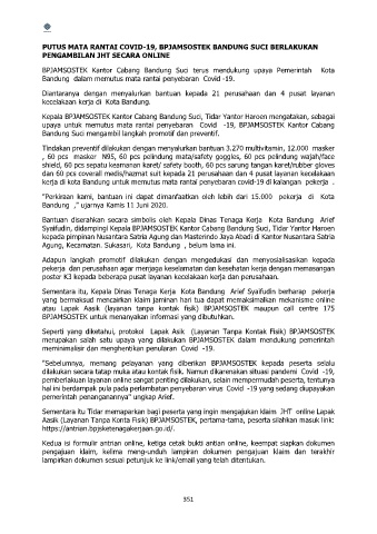 PUTUS MATA RANTAI COVID-19, BPJAMSOSTEK BANDUNG SUCI BERLAKUKAN