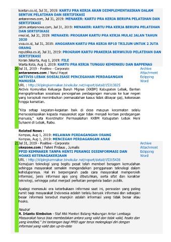 antaranews.com, Jul 31, 2019: MENAKER: KARTU PRA KERJA BERUPA PELATIHAN DAN