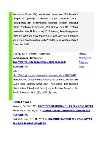 Kompas, Dec 31, 2019: PRESIDEN RESMIKAN 1.113 BLK KOMUNITAS