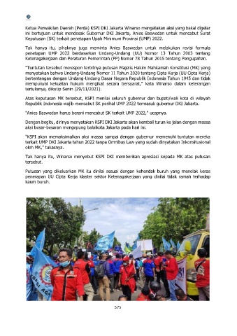 Tak hanya itu, Winarso menyebut KSPI DKI memberikan apresiasi kepada MK atas putusan