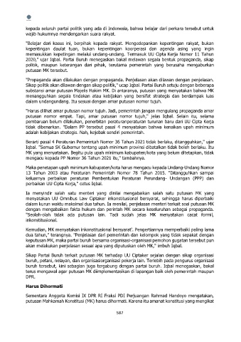 "Harus dilihat amar putusan nomor tujuh. Jadi, pemerintah jangan mengulang propaganda amar