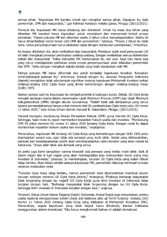tidak terpancing dengan isu negatif UU Cipta Kerja guna iklim investasi di Indonesia tetap