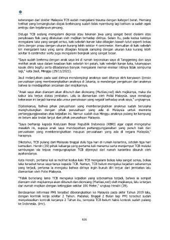 penyiksaan fisik yang dilakukan oleh majikan terhadap dirinya. Selain itu, pada kedua kakinya