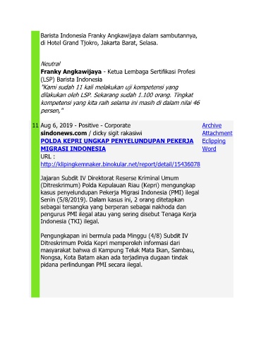 Barista Indonesia Franky Angkawijaya dalam sambutannya,