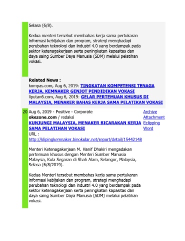 KUNJUNGI MALAYSIA, MENAKER BICARAKAN KERJA Eclipping