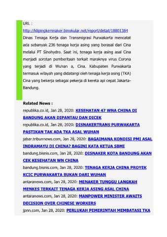 bandung.bisnis.com, Jan 28, 2020: TENAGA KERJA CHINA PROYEK