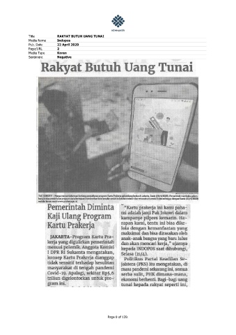 Title RAKYAT BUTUH UANG TUNAI Media Name Indopos Pub. Date 22 April 2020 Page/URL 2 Media Type Koran Sentiment Negative Page 8 of 139.