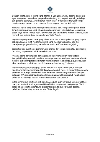 pelatihan khususnya barista dari Aceh. Pelatihan barista yang selama ini 240 jam