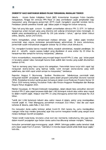 ke dalam insentif pajak. Adapun total PPh 21 yang ditanggung pemerintah mencapai Rp 25,6
