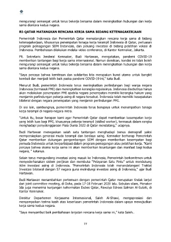 ketenagakerjaan, khususnya penempatan tenaga kerja terampil Indonesia di Qatar, perluasan