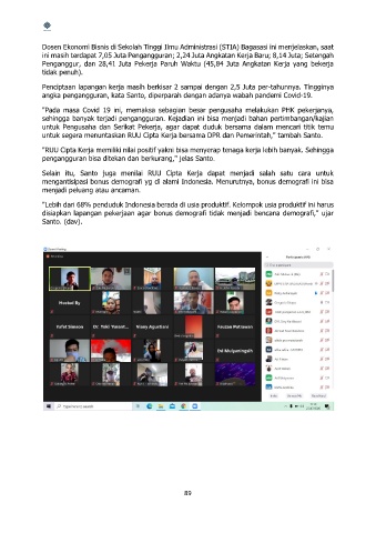 angka pengangguran, kata Santo, diperparah dengan adanya wabah pandemi Covid-19.