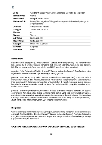 positive - Irfan Setiaputra (Direktur Utama PT Garuda Indonesia (Persero) Tbk) PHK itu adalah