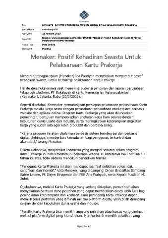 Title MENAKER: POSITIF KEHADIRAN SWASTA UNTUK PELAKSANAAN KARTU PRAKERJA