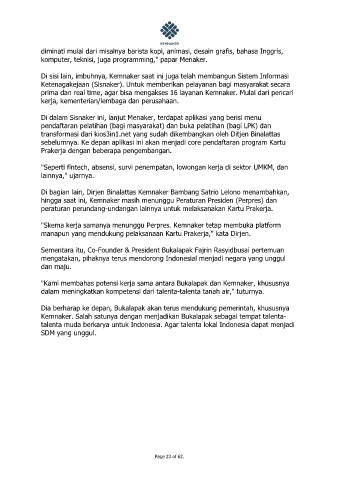 Kemnaker. Salah satunya dengan menjadikan Bukalapak sebagai tempat talenta-