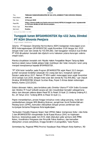 Title TUNGGAK IURAN BPJAMSOSTEK RP 432 JUTA, DIREKSI PT KDH DIVONIS PENJARA