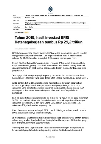 Title TAHUN 2019, HASIL INVESTASI BPJS KETENAGAKERJAAN TEMBUS RP 29,2 TRILIUN
