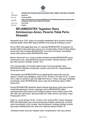 Title BPJAMSOSTEK TEGASKAN DANA KELOLAANNYA AMAN, PESERTA TIDAK PERLU KHAWATIR