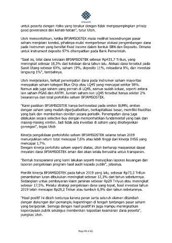 Kinerja pengelolaan portolofolio saham BPJAMSOSTEK selama tahun 2019