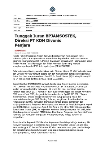 Title TUNGGAK IURAN BPJAMSOSTEK, DIREKSI PT KDH DI VONIS PENJARA