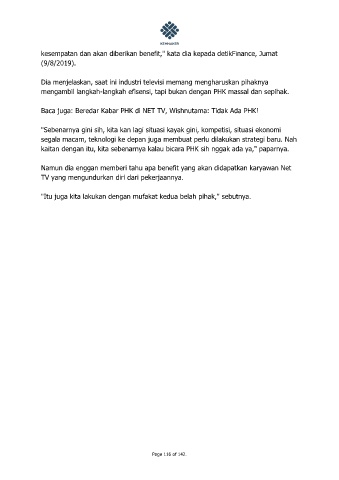 Namun dia enggan memberi tahu apa benefit yang akan didapatkan karyawan Net