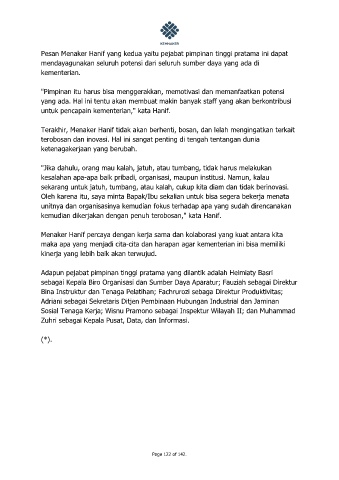 Pesan Menaker Hanif yang kedua yaitu pejabat pimpinan tinggi pratama ini dapat