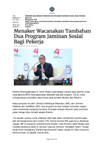 negara. JKP ini semacam unemployment benefit," kata Menaker Hanif Dhakiri saat