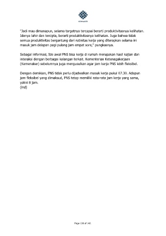 Dengan demikian, PNS tidak perlu dijadwalkan masuk kerja pukul 07.30. Adapun
