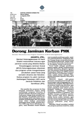 Title DORONG JAMINAN KORBAN PHK Media Name Pikiran Rakyat Pub. Date 12 Agustus 2019 Page/URL 11 Media Type Koran Sentiment Positive Page 20 of 142.