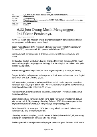 Title 6,82 JUTA ORANG MASIH MENGANGGUR, INI FAKTOR PEMICUNYA.