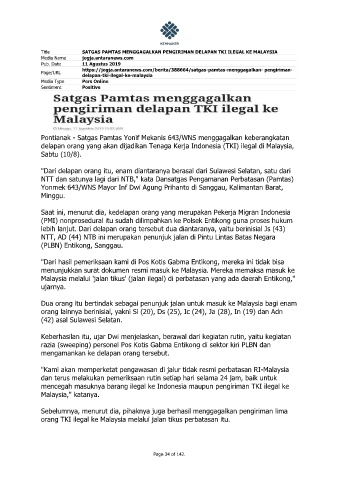Title SATGAS PAMTAS MENGGAGALKAN PENGIRIMAN DELAPAN TKI ILEGAL KE MALAYSIA