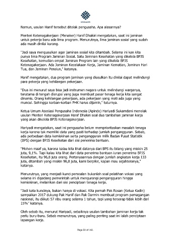 Namun, usulan Hanif tersebut ditolak pengusaha. Apa alasannya?