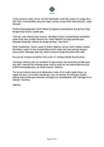 "Untuk jaminan sosial, mohon izin Pak Hanif kalau boleh dua usulan itu tunggu dulu.