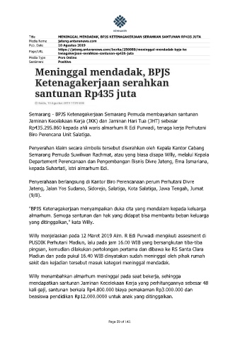 Title MENINGGAL MENDADAK, BPJS KETENAGAKERJAAN SERAHKAN SANTUNAN RP435 JUTA