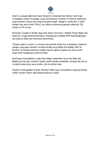 "Dengan adanya masjid ini, semoga para peserta diklat bisa menjadikan masjid ini