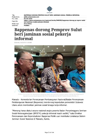 Title BAPPENAS DORONG PEMPROV SULUT BERI JAMINAN SOSIAL PEKERJA INFORMAL