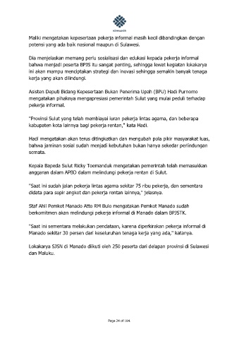 kabupaten kota lainnya bagi pekerja rentan," kata Hadi.