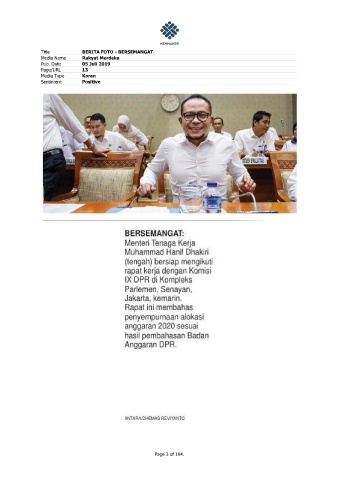 Title BERITA FOTO - BERSEMANGAT Media Name Rakyat Merdeka Pub. Date 05 Juli 2019 Page/URL 13 Media Type Koran Sentiment Positive Page 3 of 104.