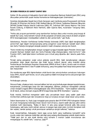 Sekitar 28 ribu pekerja di Kabupaten Garut telah mendapatkan Bantuan Subsidi Upah (BSU) yang