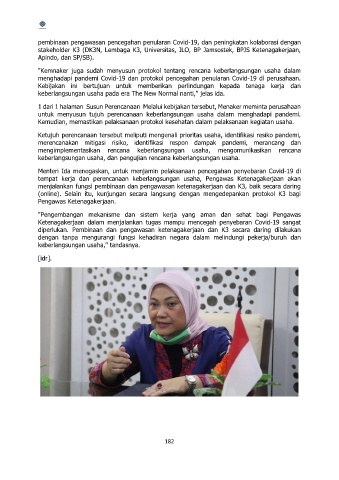 menghadapi pandemi Covid-19 dan protokol pencegahan penularan Covid-19 di perusahaan.