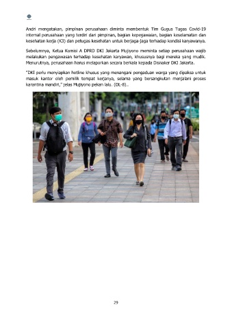 Andri mengatakan, pimpinan perusahaan diminta membentuk Tim Gugus Tugas Covid-19