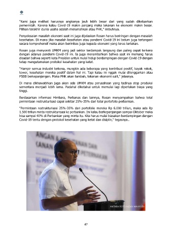 permintaan restrukturisasi capai sekitar 25%-35% dari total portofolio perbankan.