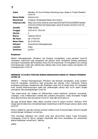 Page 50 - e-KLIPING KETENAGAKERJAAN 8 JUNI 2020